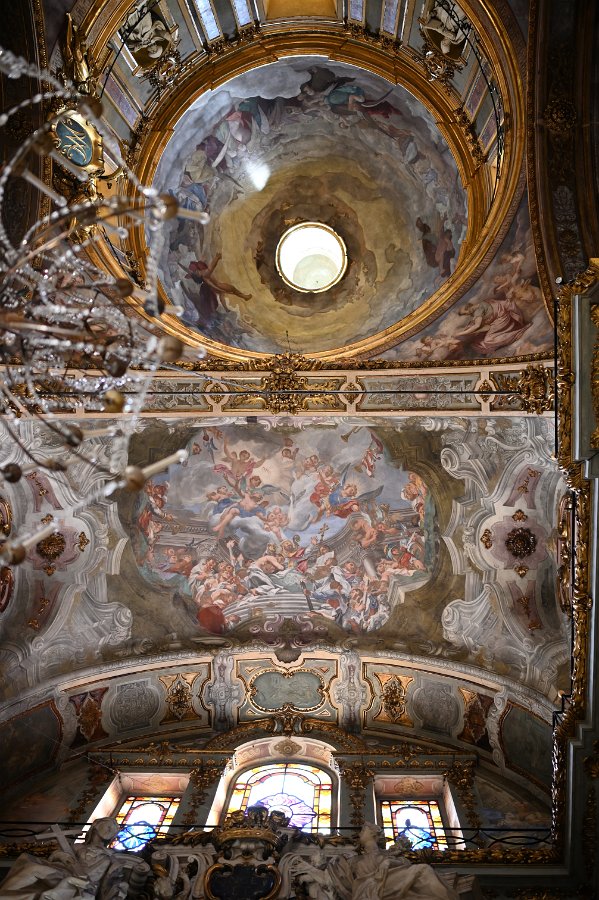 cupola, arco e vetrate del transetto destro cupola e arco del transetto destro affresco sull'arco del transetto destro vetrate del transetto destro Altare della Vergine e sant'Agostino