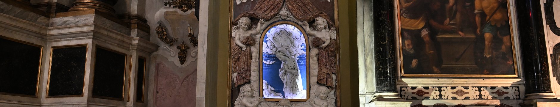 La Natività, posta tra gli altari della Madonna della Cintura e di S. Vincenzo martire Tabernacolo marmoreo seicentesco racchiude la terracotta della Natività alla base di un pilastro Tabernacolo marmoreo seicentesco racchiude la terracotta della Natività Natività con l'Eterno Padre, terracotta smaltata (1475), della scuola di Andrea della Robbia San Vincenzo