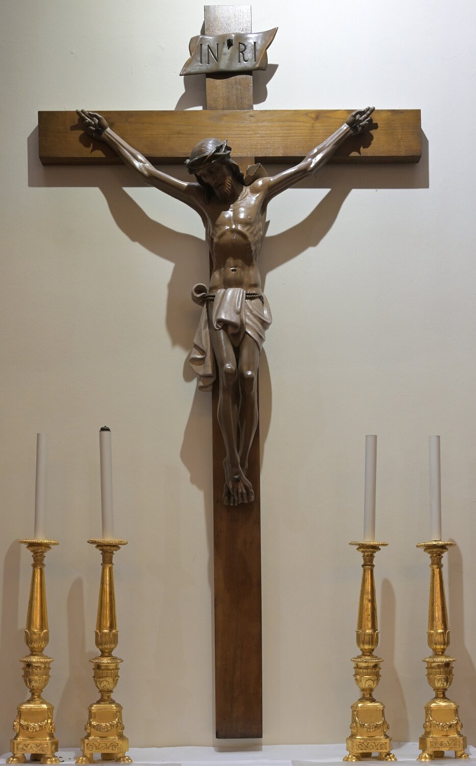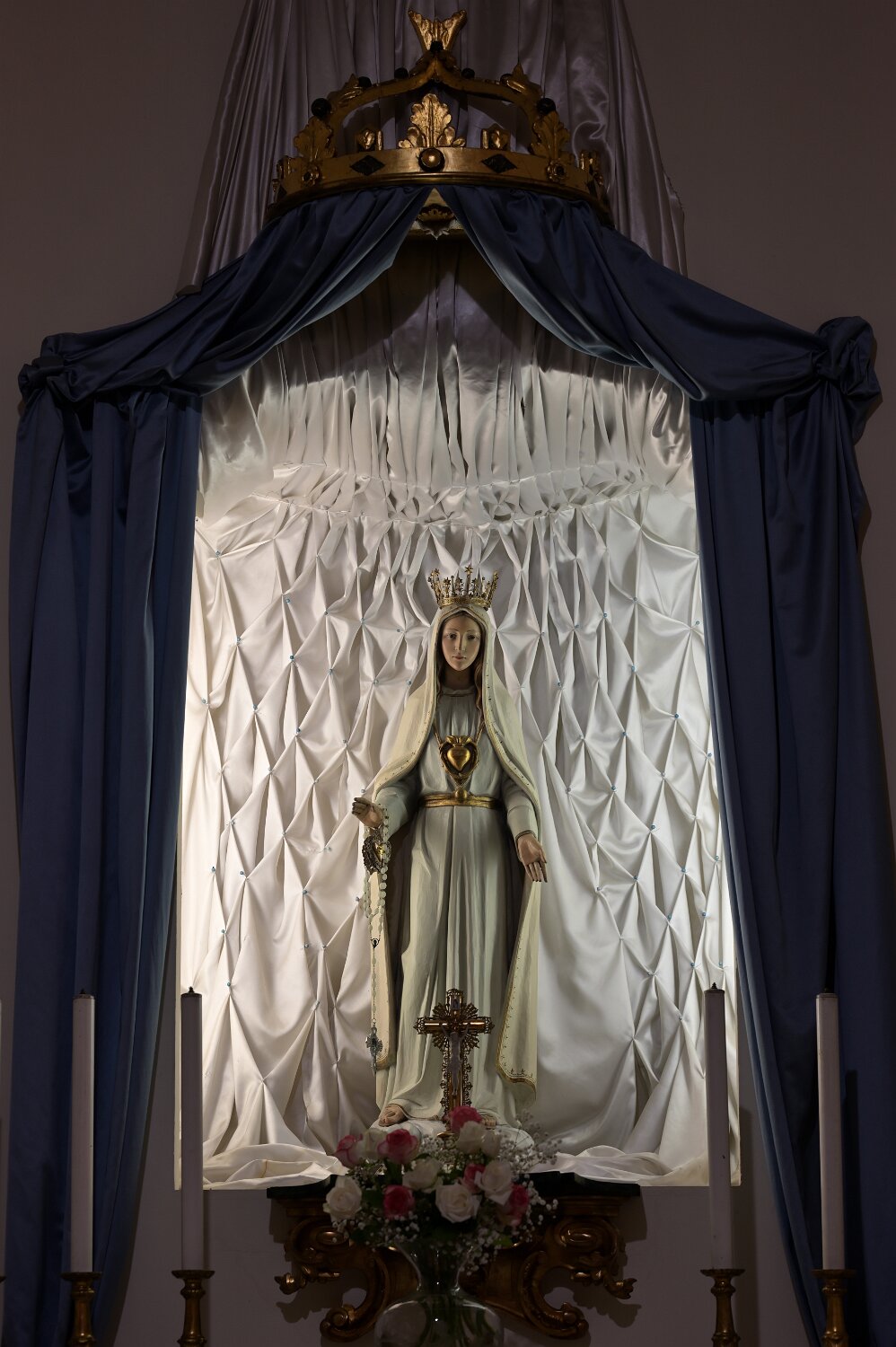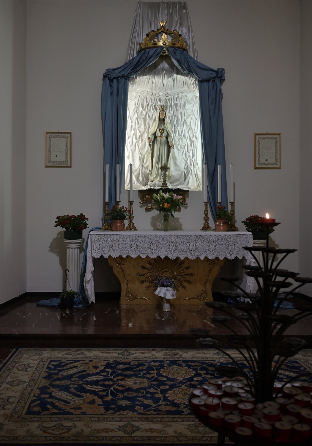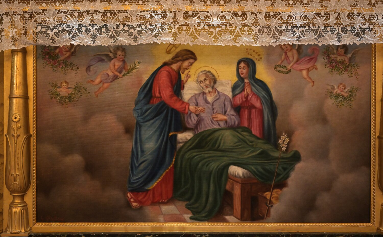 Parete sinistra Altare del Crocifisso presso l'ingresso Crocifisso presso l'ingresso San Giuseppe tra San Pio e Santa Teresina di Liseaux Altare di San Giuseppe Paliotto con il Transito di San Giuseppe Gesù Misericordioso Altare del Cuore Immacolato di Maria Statua del Cuore Immacolato di Maria Presbiterio