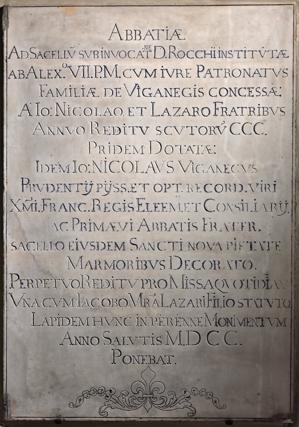 Lapide del 1700 apposta presso l'ingresso